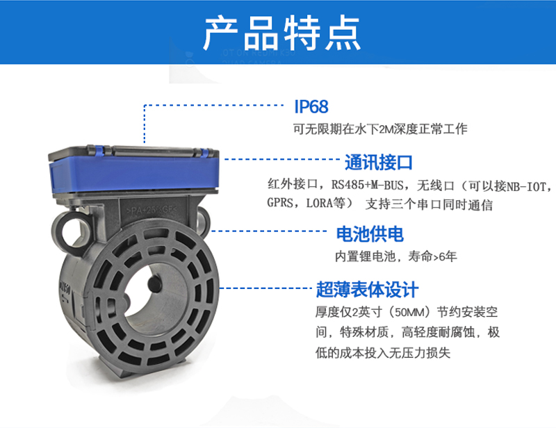 由于使用了类似FLEXIM 流量计的那种通过采集信号波形进而进行波形分析的技术,该系列水表具有高精度、低漂移、稳定可靠等特点。 由于使用了具有 30dB 动态范围的信号采集硬件,该系列水表可以抵抗中等程度的管段结垢,可以适用浑浊的流体。 这款水表是完全采用防水胶灌封的,可以浸水工作。 本系列所有规格夹装厚度为 2 英寸(50 毫米)。 公司实行壹年内出现产品质量问题免费换新表(人为及不可抗拒因素除外,以合同签订日期为准)。